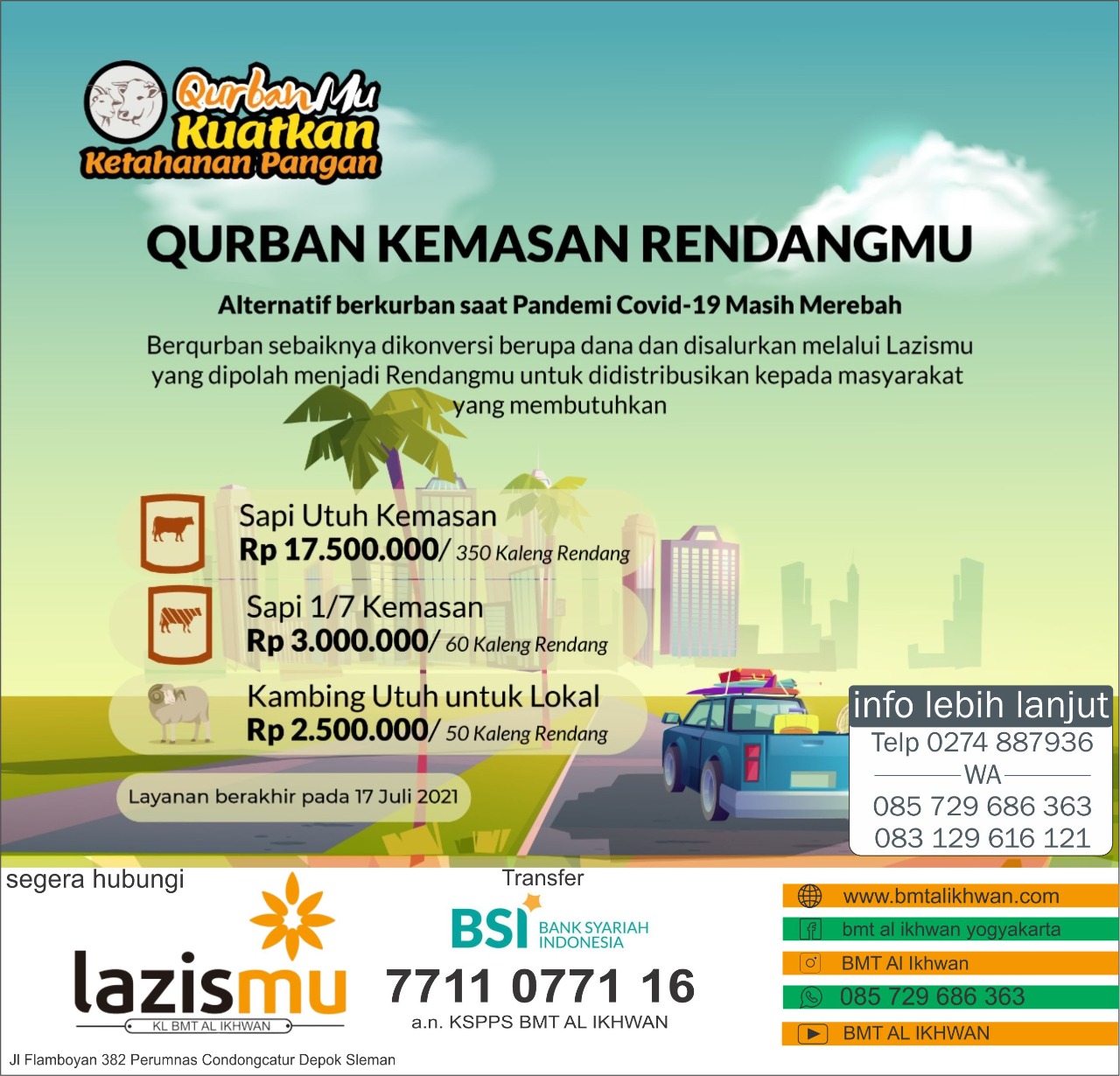Kantor Layanan (KL) LazisMu BMT AL IKHWAN menerima titipan Warga Muslim/muslimah untuk berQurban dalam bentuk Kemasan Rendangmu, dengan jenis: